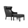 Sus perfectas curvas le proporcionan un estilo único. El tapizado en cuero es muy agradable al tacto y añade un toque extra de refinamiento al producto. Gracias a su cualidad y su perfecto acabado, la Reposapiés puede ser usada por sí sola, pero sigue siendo el accesorio perfecto e indispensable para el Sillón 2204, ya que su cojín asegura una comodidad insuperable para sus piernas.