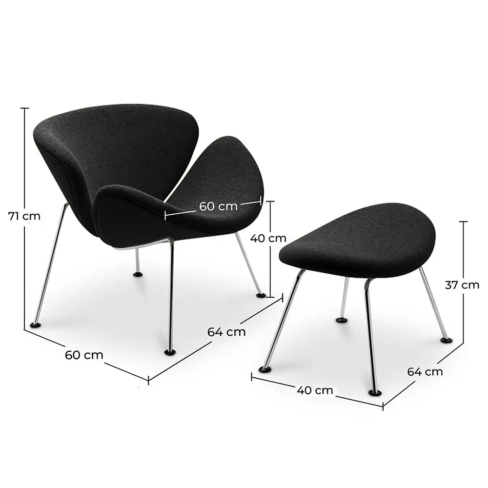 El Sillón con Reposapiés Gajo con su asiento suave y esponjoso, tiene forma envolvente, y se abre como una flor, invitándole al relax. Su base es de acero cromado. El Sillón Gajo está disponible en una amplia variedad de tapizados y colores.