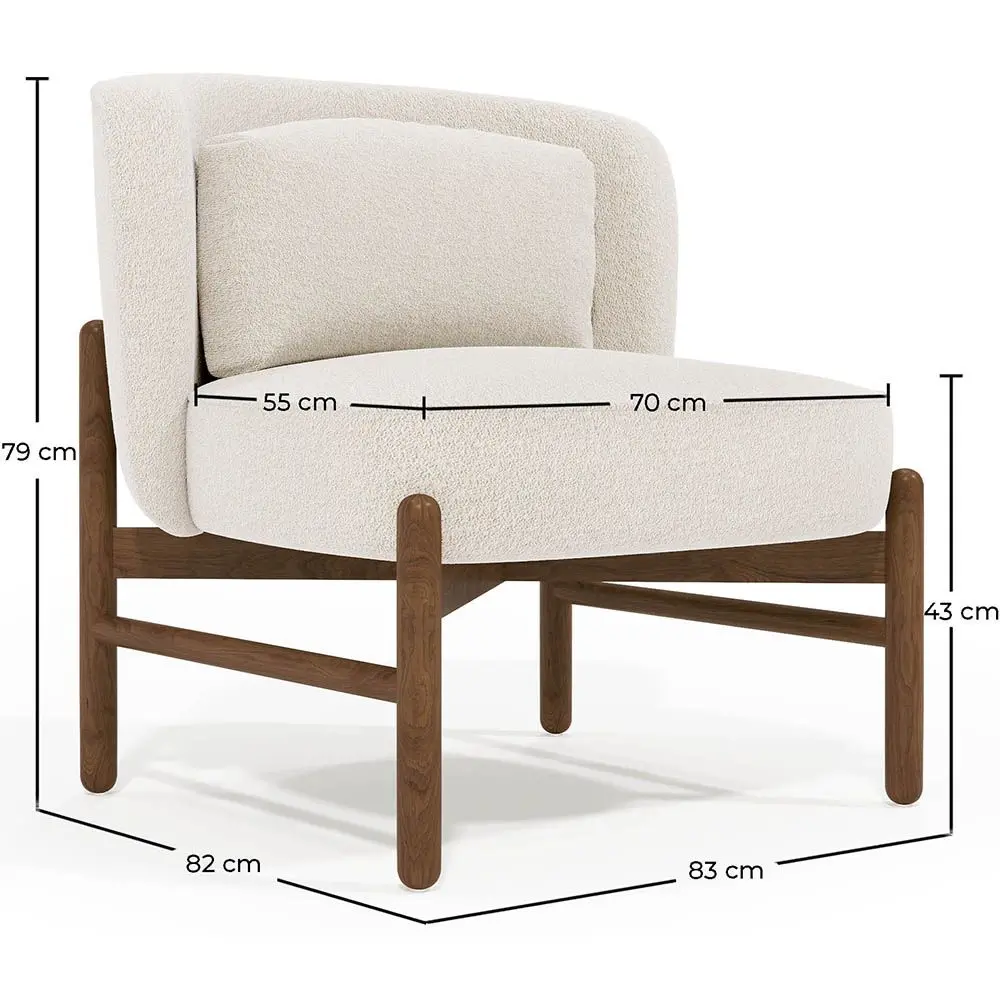 La combinación de su tapizado en tela bouclé, estructura de madera y diseño elegante convierten al sillón Ebbe en un elemento de atracción visual. Un sillón tapizado en tela bouclé con estructura de madera es el equilibrio perfecto entre funcionalidad, comodidad y estética, ofreciendo una experiencia de asiento envolvente y un toque de sofisticación a cualquier espacio. En hoteles y espacios comerciales, puede complementar la recepción o las áreas de descanso, brindando a los huéspedes una experiencia de confort y estilo excepcionales. Su tapizado ligeramente rugoso y sus hilos bouclé intrincadamente entrelazados crean un efecto visualmente interesante que añade carácter y estilo. El asiento y el respaldo están cuidadosamente acolchados y contorneados para brindar un soporte adecuado y una sensación de relajación total.