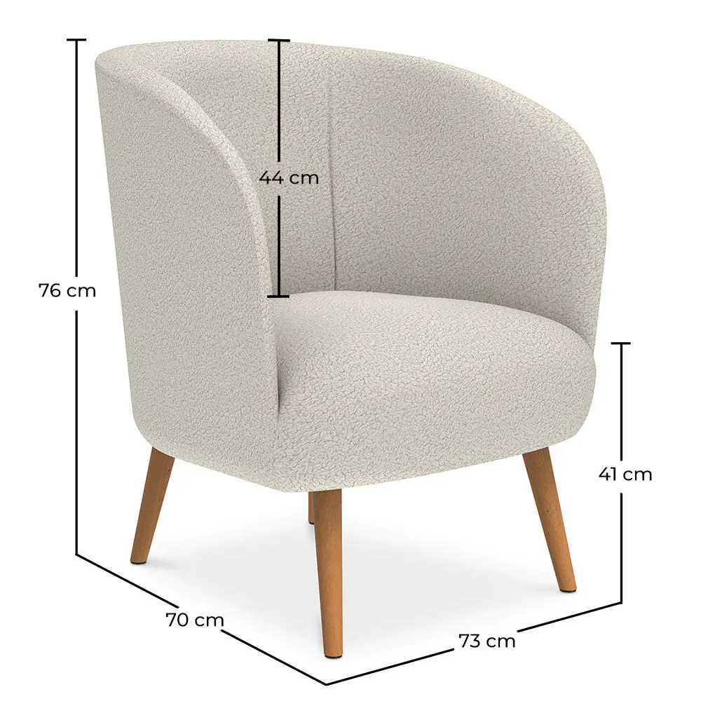 El sillón de diseño Perkin está tapizado de tejido bouclé en color blanco para convertirse en ese lugar agradable en el que querrás pasar largas horas. Esta cómoda butaca con patas de madera te lo pone muy fácil para combinarla con cualquier estilo de decoración. Ideal para la sala de estar, el dormitorio o incluso el hall de un hotel, restaurante o cafetería de lujo, nuestro sillón tapizado en lana de borrego sintética es un must have.