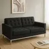 Inspirado en 1954, el Sofá Kanel de 2 asientos es uno de los sofás de diseño por excelencia, con ciertas características basadas en los muebles ingleses del siglo 18, aun siendo totalmente moderno con sus líneas rectas y minimalistas. Está compuesto por unas patas de acero inoxidable bajo un marco de madera. Esta íntegramente cubierto de tela, ofreciendo una comodidad total.