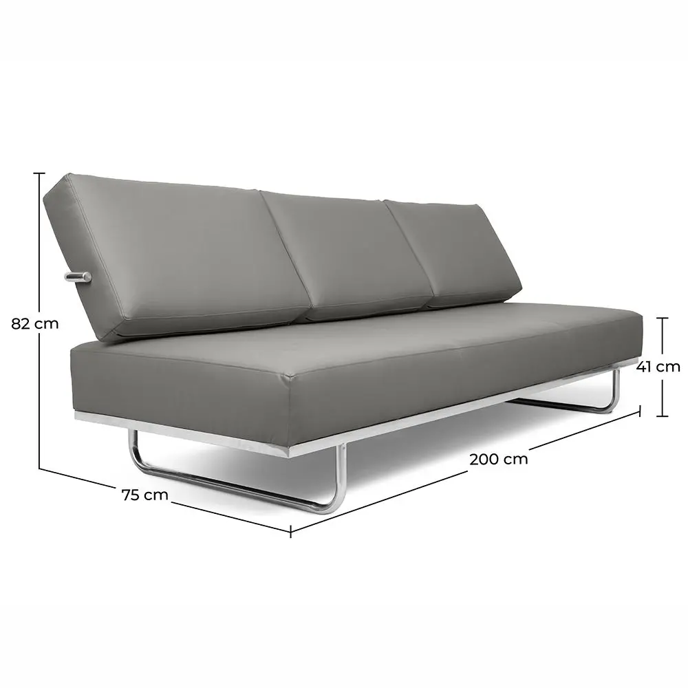 ¡La combinación perfecta entre aspecto y funcionalidad! El Sofá Cama SQUAR , diseñado en 1934, es un sofá de 3 asientos que se puede convertir en una cama de un buen gusto increíble. El elegante diseño retro y su marco ligero y sofisticado reflejan la alta tecnología de su momento, haciendo que esta pieza de diseño tenga una gran demanda aun hoy día. Está compuesto por un marco de acero inoxidable y una cubierta de cuero de imitación. Este moderno diseño es práctico a la vez que estéticamente atractivo. Perfecto para sus visitas, estará encantado con su diseño y comodidad. Una vez que lo pruebe, estará listo para relajarse en él.