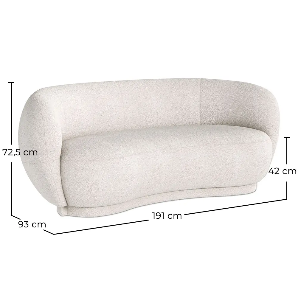 El minimalismo se apodera de este sofá curvo de 3 plazas con tapizado bouclé en un coqueto color blanco roto. Como las patas quedan ocultas, ¡el sofá parece flotar en el aire! Tu salón se volverá radicalmente moderno si eliges este sofá curvo, ya que el tapizado en tela bouclé y el mobiliario con formas orgánicas son dos de las tendencias más fuertes de decoración.