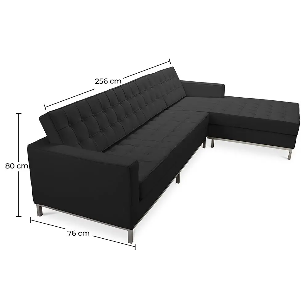 Este Sofá de Esquina Kanel fue diseñado en 1954. Puede ser usado como un sofá tradicional o como cama de día, ya que le ofrece un asiento de excelente comodidad. Los cojines están hechos de cuero y las patas de acero inoxidable. Es el sofá ideal para una habitación grande en la que pueda disfrutar de su comodidad y estilo.