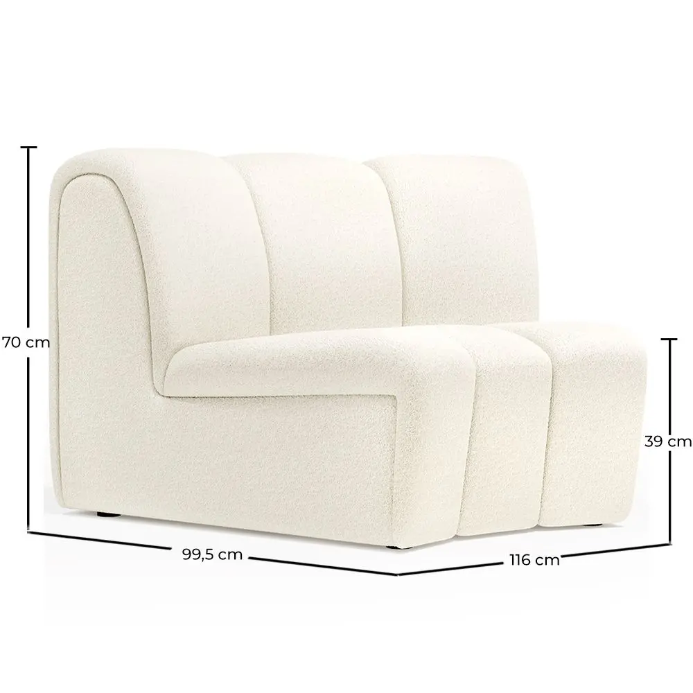 Presentamos nuestro módulo de sofá con un diseño curvo que redefine el concepto de confort y modernidad. Tapizado en tela bouclé de primera calidad, este módulo no solo es visualmente llamativo con su forma elegante, sino que también proporciona una experiencia de asiento lujosa. Perfecto para hoteles y restaurantes que valoran la calidad y el diseño, este módulo se puede combinar de manera fluida con nuestro módulo recto, permitiéndote crear un sofá personalizado que se adapte a tu estilo y espacio. Cada detalle de este módulo ha sido cuidadosamente diseñado para ofrecer una combinación perfecta de estilo contemporáneo y comodidad insuperable.