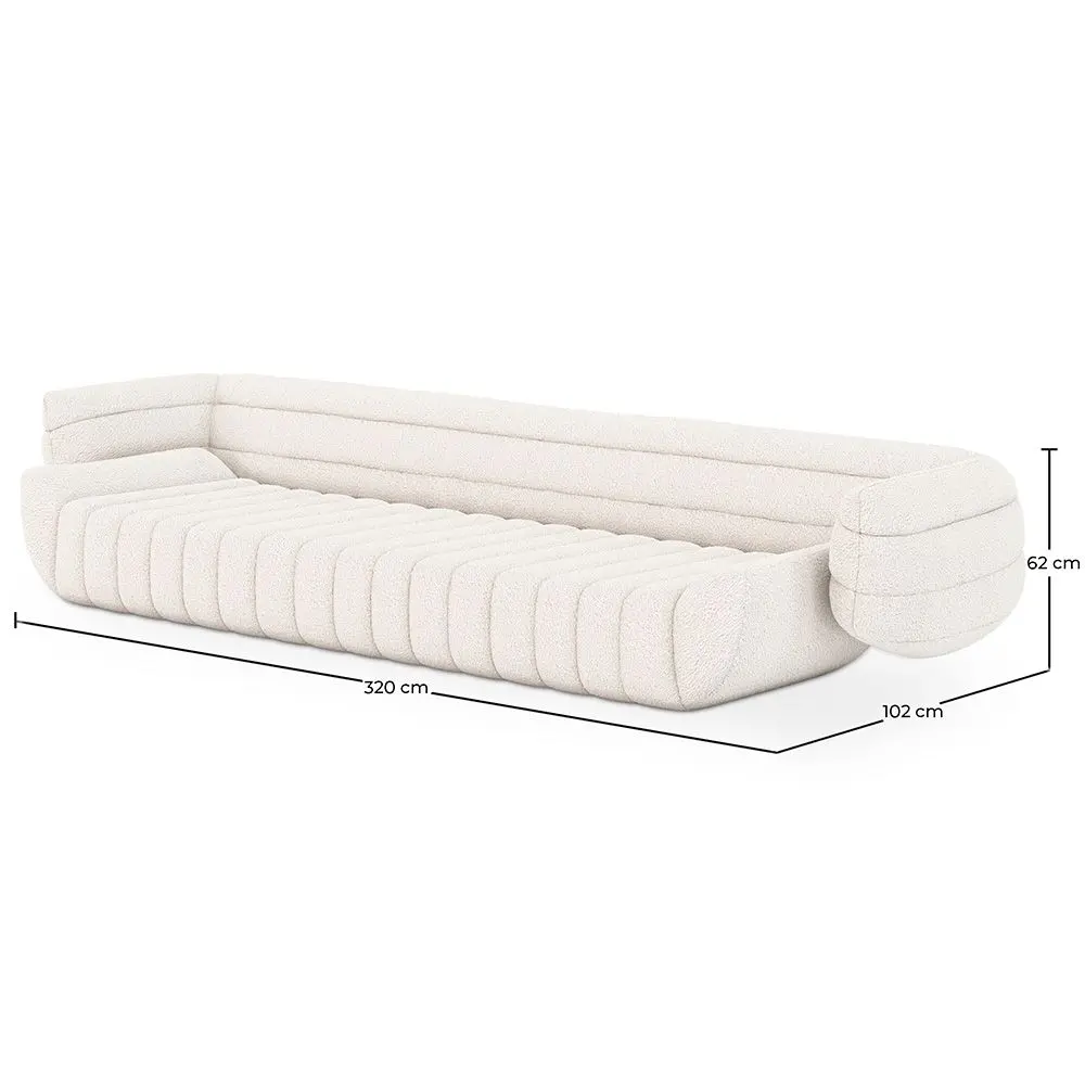 El sofá Lumun tapizado en tela bouclé es una pieza de lujo que te ofrece la comodidad y el estilo que necesitas para tu casa. Su asiento extra largo y su comodidad lo convierten en el imprescindible para los salones modernos. El diseño atractivo con tela imitación a la lana de borreguito, combinado con sus líneas sencillas, hacen de este sofá de 4/ 5 plazas un elemento perfecto para tu hogar. Ideal también para cualquier centro de negocio, hotel o sala de espera, este sofá hará que tu espacio se vea elegante, moderno y acogedor. Con su calidad premium, la colección de sofás Lumun es la elección ideal para aquellos que buscan un estilo refinado sin renunciar a la comodidad.