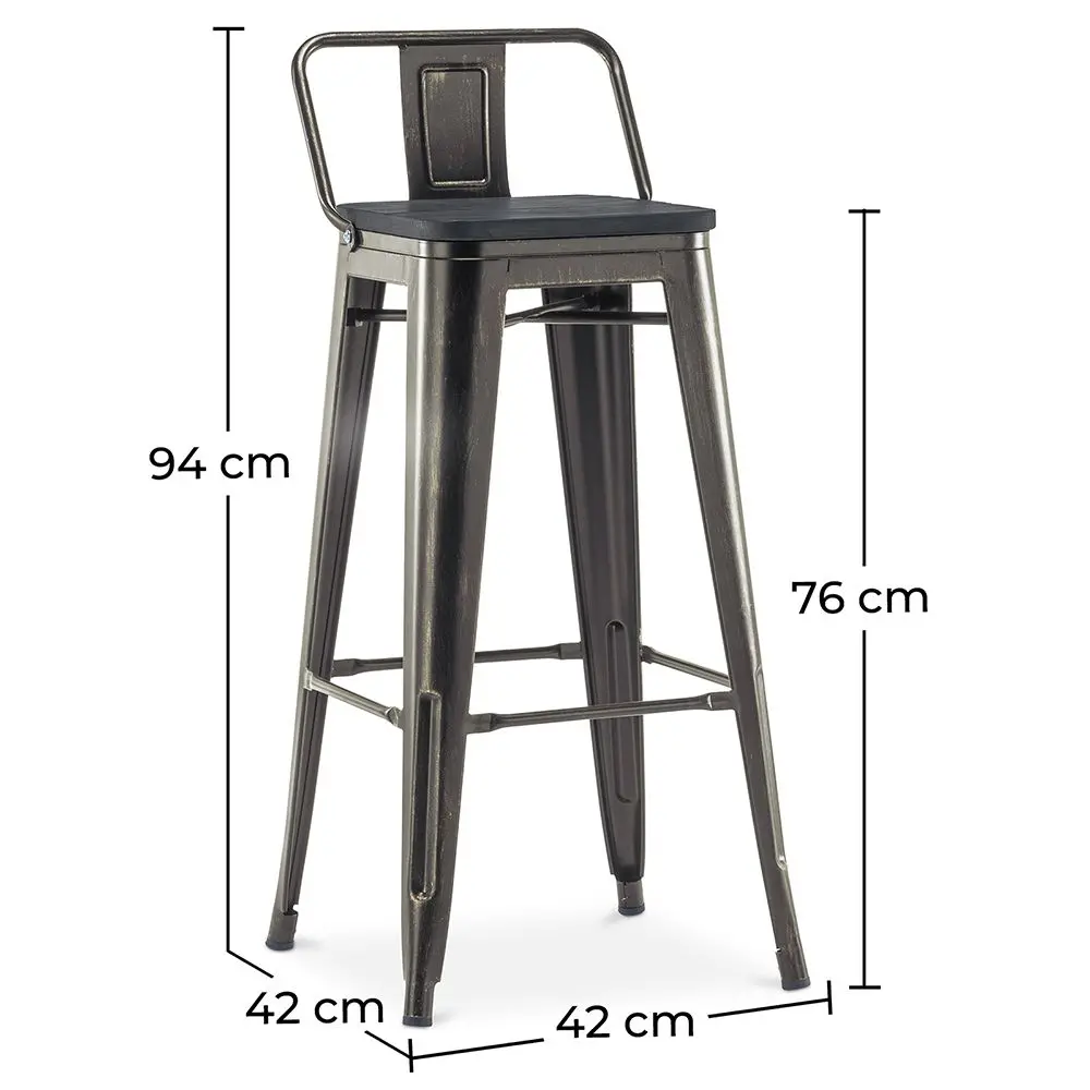 Este es un taburete para personas que buscan diseño y simplicidad. La estructura de hierro ligera forma la base de este taburete de diseño industrial, con suelas de goma para garantizar que el taburete tenga tracción y no dañe el suelo. La parte superior cuadrada de madera proporciona una zona de descanso cómoda, mientras que el respaldo de hierro proporciona soporte y mejora la postura para sentarse.