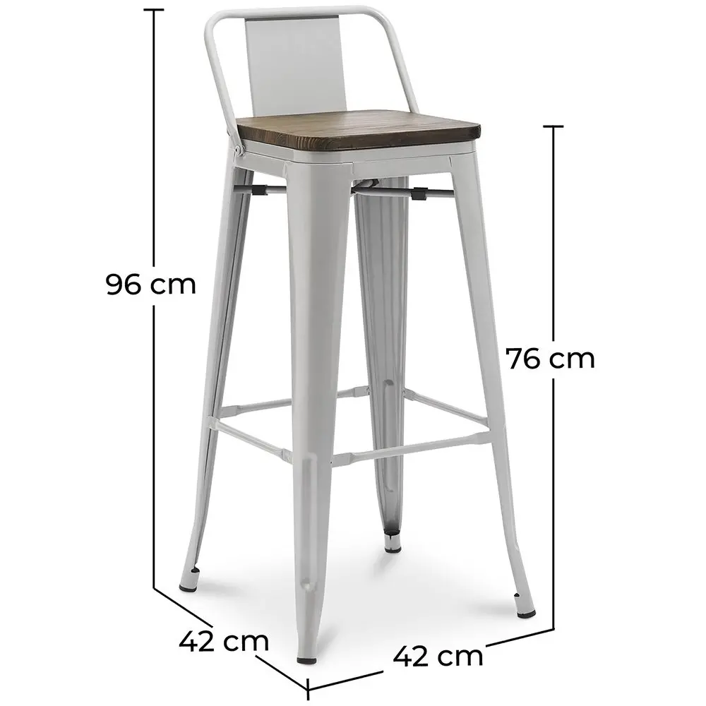 Disfruta de comodidad y estilo en tu cocina o barra con el taburete Metalix de 76 cm con respaldo y asiento de madera oscura. Su diseño industrial robusto combina una estructura de acero resistente con un asiento de madera oscura que aporta calidez y elegancia, ideal para interiores modernos y sofisticados.