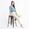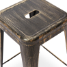 Con una altura de 76 cm, es perfecto para barras altas (alrededor de 105 cm) y se adapta sin esfuerzo a interiores que buscan mobiliario resistente y con carácter. Su acabado metálico transmite solidez, y su diseño sin respaldo lo convierte en una opción práctica para optimizar el espacio sin perder estabilidad.