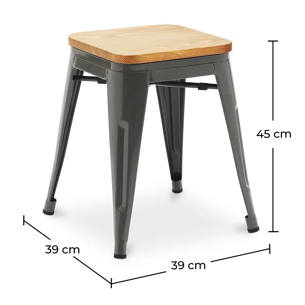 Ideal para espacios compactos y multifuncionales, el taburete Metalix de 45 cm sin respaldo con asiento de madera clara combina diseño industrial y funcionalidad. Su estructura robusta de acero garantiza durabilidad, mientras que el asiento de madera clara aporta un toque natural y luminoso que realza cualquier ambiente interior.